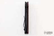 - Burgundy micarta handle.