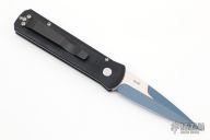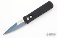 This 721 Godson from Pro-Tech Knives features a blue cerakoted spear point blade with swedge. The handle is comprised of a black anodized aluminum frame with a black coated stainless steel tip up clip. Includes original box and paperwork. Excellent condition.