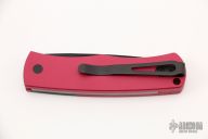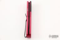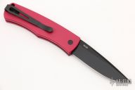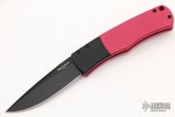 This BR-1.7 Whiskers Design by Protech Knives features a black 154CM blade, false top edge. The handle has a red aluminum frame with a black aluminum bolster release, stainless backspacer and tip up black stainless clip. Lanyard hole at the butt. Comes with original box and papers. PR7 #908. Excellent condition.