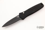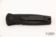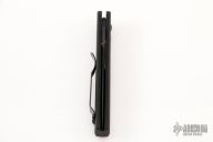 This 3551 Mini Stimulus features a black spear point blade with false top edge and a black aluminum handle with push button and safety, tip up or down reversible black stainless steel clip, lanyard hole at the butt. Comes with original box and papers. Has been resharpend on a sharpener, has a couple light scuffs. Excellent condition otherwise.