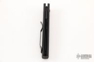 This 3551 Mini Stimulus features a black spear point blade with false top edge and a black aluminum handle with push button and safety, tip up or down reversible black stainless steel clip, lanyard hole at the butt. Comes with original box and papers. Excellent condition.