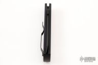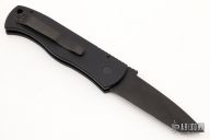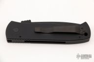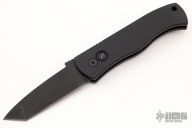 This Emerson/Pro-Tech CQC7 automatic has a chisel ground black sterile blade with a plain edge and a solid black aluminum handle with a tritium push button insert.  Black stainless steel clip. Coil spring. Comes with original box and papers. Has a couple light scuffs, and has been resharpened on a WE. Excellent condition.