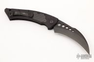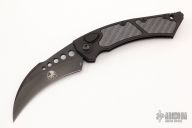 This Hawk Auto by Microtech Knives features a DLC stonewashed hawkbill blade. The handle has a black aluminum frame with carbon fiber inlays, DLC hardware and tip up clip. Dated 06/2021 and s/n 294. Comes with original box and papers. Excellent condition.