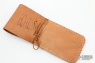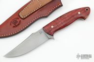 This Field and Stream by Master Smith Burt Foster features a hand rub finished blade, .155" blade thickness and 1.255" blade depth, full tapered tang construction. The handle has wood scales with nickel silver pins. Comes with a brown leather sheath and brown leather case. Excellent condition.