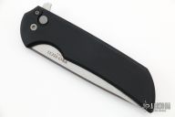 This Mordax by Pro-Tech is a Ferrum Forge design and features a stonewashed drop point blade. The handle has a black aluminum frame with black tip up stainless steel clip. Comes with original box and papers. Magnacut Blade. New from Maker!