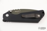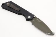 This Pro-Strider SNG by Pro-Tech and Strider Knives features a OD Green Cerakote blade with notched thumbrest. The handle has a black aluminum frame with black hardware and black stainless steel tip up clip. Comes with original box and papers. Excellent condition. NWK Exclusive edition.