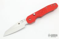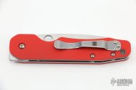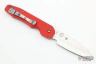 This Smock by Spyderco has a satin finish sheepsfoot style blade. The handle features carbon fiber scales over stainless steel liners with a reversible stainless steel pocket tip up pocket clip. Comes with original box and papers. Excellent condition. Red G10 Smock Scales.