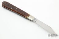 This antique auto by Presto features a mirror polished clip point blade. The handle has nickel silver bolsters, jigged bone scales, steel liners and backspacer, has safety. Nice action and blade seating. Has some scratches and blade play, otherwise good condition.