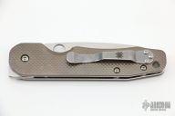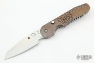 This Smock by Spyderco has a satin finish sheepsfoot style blade. The handle features carbon fiber scales over stainless steel liners with a reversible stainless steel pocket tip up pocket clip. Comes with original box and papers. Excellent condition. Bronze Titanium Smock Scales.