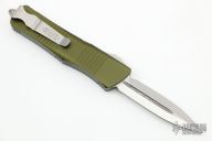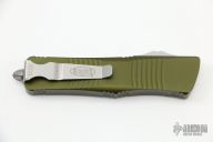This Troodon by Microtech features a Satin finished double edged blade. Green aluminum handle with glass breaker and stainless steel clip. Dated 03/2022, S/N 9754. Comes with original box and papers. Excellent condition.