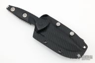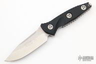 This Mini Socom Alpha by Microtech features a stonewashed clip point blade with a notched thumb ramp and a full tang construction. .169" Blade Stock. 1.178" Blade Depth. The handle features black G10 scales. Includes a kydex sheath, original box and papers. Excellent Condition. Dated 12/2019 and #0413