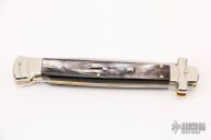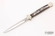 Angelo Campolin Sr. was born in 1923 in Maniago, Italy. He worked on perfecting his knife making skills before WWII and at this time made his first switchblades. After the war, in 1947 he started his company and made 30 stilettos with the marking “Angelo Campolin”. In the 1970’s Angelo’s son Gianni started to work in the company and they were specializing in folding hunting knives and also manual folding stilettos for the Robert Klaas company in Solingen Germany with their Kissing Cranes mark. In 2002 American switchblade collectors Dan Fuller, Brad West, and Tim Zinser were visiting Maniago and enjoying a few glasses of wine in a bar with Angelo Jr. and Gianni. The discussion was about a new name for some knife projects they wanted to pursue. It was Brad West that suggested the tang stamp should be AGA, for Angelo, Gianni, Angelo, thus representing three generations in the knife making business. The Campolins liked it and it stuck. In the beginning it was just a few items, but grew to the point where now there are 12 models and different scale options. The goal has been to offer quality switchblades using the old methods and traditions. Being a collector himself, Angelo Jr. knows what others like. The company headquarters has moved to Austria with production still in the original Maniago shop, as well as the others in Maniago that produce the knives for A.G.A. Campolin.