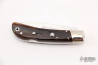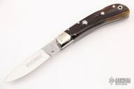 This Speed Hunter by AKC Italy has a polished blade, high polish nickel silver bolsters, and honey horn scales, stainless steel liners and backspacer. Slide safety switch. Excellent condition.