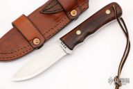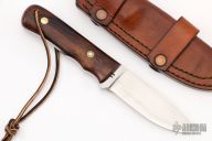 This Saranac Knife by Dave Beck is the model that is used as the "Piggy Back" blade with the WSK. It features a hand rub satin finished drop point blade with .240" blade stock and 1.185" blade depth, full tang construction. The handle has desert ironwood scales. Comes with a brown leather sheath. Has been resharpened, otherwise excellent condition.