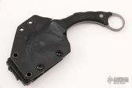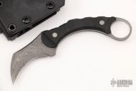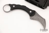 This Karambit by RSK features a Chad Nichols Wavepool Damascus blade with .185" blade stock and 1.175" blade depth, full tang construction. The handle has black G-10 scales. Comes with a kydex sheath and COA dated 3/30/17. Excellent condition.