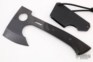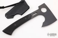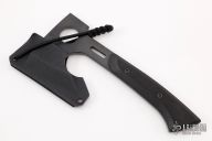 This Bearded Hatchet by Medford Knives features a black PVD finished S7 chisel ground blade with .292" blade stock, full tang construction with black G-10 scales. Comes with kydex sheath. Excellent condition.