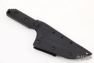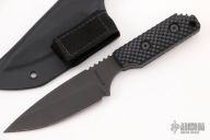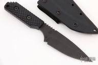 This SA-L by Mick Strider features a black drop point blade with a notched thumbrest, .207" blade stock and 1.337" blade depth, full tang construction. The handle has black gunner grip scales. Comes with a kydex sheath. Light Sheathing marks are visible on the blade otherwise the knife is in Excellent condition.