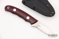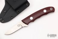 This K-12 Small Game Skinner by Dozier Knives features a satin finished blade with .127" blade stock and .725" blade depth, full tang construction. The handle has maroon linen micarta scales with aluminum pins and lanyard hole. Comes with kydex sheath with belt clip. New from maker.
