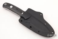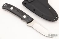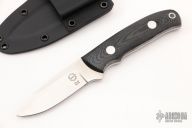 This K-31 Arkansas Traveler by Dozier Knives features a satin finished blade with .127" blade stock and .883" blade depth, full tang construction. The handle has black linen micarta scales with aluminum pins and lanyard hole. Comes with kydex sheath with belt clip. New from maker.