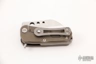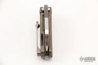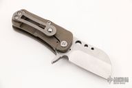 This Chunky Monkey features a stonewashed sheepsfoot blade with a notched thumbrest. The handle has an anodized titanium frame and tip up clip, stainless steel backspacer. Comes with original hard case and papers. Excellent condition.