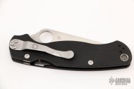 This Paramilitary 2 Linerlock Folder from Spyderco has a satin finished clip point blade with thumb hole and notched thumb rest. Handle is black G10 with stainless steel liners and stainless steel 4-way reversible clip. Excellent condition. Comes with original box and papers.