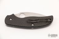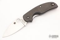 This C123CFP by Spyderco Knives features a satin finished blade with thumb hole. Carbon fiber pattern G-10 scales, stainless steel liners and tip up (right or left reversible) black stainless steel clip. Includes the original box and papers.  Excellent condition.