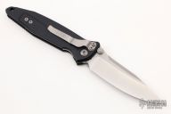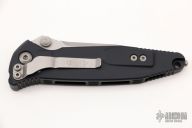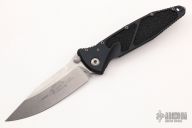This Socom Elite manual linerlock folder by Microtech Knives has a stonewashed blade with notched thumbrest and dual thumbstuds. Has a black aluminum handle with non-slip inlays, tip down blasted stainless steel clip. Serial number 5531 and dated 06/2019. Comes with original box and papers. Excellent condition.