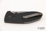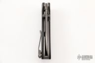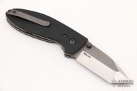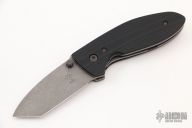 This Alpha framelock by Tom Krein features a stonewash finished chisel ground blade with dual thumbstuds and a false top edge. The handle has black G-10 scales, tumbled titanium liners and tip up clip, titanium backspacer. Nice lock up, detent and blade seating. Includes a padded case and COA.  New from maker!