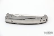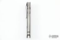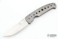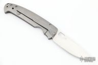 This framelock by Tom Mayo features a hand rub satin finished Stellite 6K blade with thumbhole. The handle has a bead blasted titanium frame with hole pattern and a matching tip down clip, lanyard hole at the butt. Has a few light scuffs, otherwise excellent condition. Nice detent, lockup and blade seating.