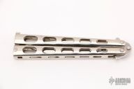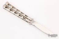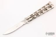 This Balisong by Benchmade features a polished blade. The handles are chrome plated. Has some light scrathes, otherwise good condition. This knife is a Factory Second.