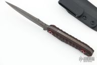 This One-Off Prototype #001 2019 by Kraken Tactical features a heavy stonewashed blade with notched thumbrest, .191" blade stock and 1" blade depth, full tang construction. The handle has black/red G-10 scales. Comes with a kydex sheath and original box. New from maker.