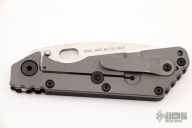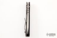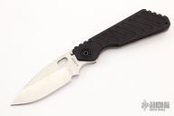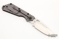 This Mick Strider SMF Fatty framelock folder features a stonewashed blade with thumbhole and notched thumbrest. The handle has a black aluminum and stonewashed titanium frame with titanium clip, tip up carry. Jimping on blade spine. Nice lockup, detent, and blade seating. NSN: 1095-01-531-5015. Comes with a knife pouch. Has some light scuffs and scratches, otherwise great condition.