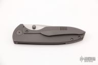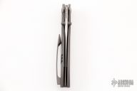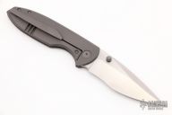 This Production Fuse by Jonas Iglesias features a satin finished blade with dual thumbstuds. The handle has a bead blasted titanium frame and tip up clip with hidden screws, notched titanium backspacer. Rides on bearings, nice detent, lockup and blade seating. Comes with a zippered case. Has a couple scuffs, otherwise excellent condition.