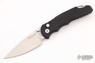 This TR-5 model has a black anodized aluminum handle with a two-tone black back spacer/lanyard attachment, and a deep carry tip-up pocket clip. The blade is stonewashed and outfitted with a thumb stud opener. The plunge lock enables safe use and provides solid lockup. Pro-Tech's TR-5 is an impressive addition to their lineup and boasts their longstanding build-quality and performance.