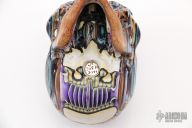 Using a technique based on the ancient Millifiore method of glassmaking, Jon combines different colored canes of clay to create an illustration roughly the size and shape of a loaf of bread. The central design is repeatedly stretched and cut as other designs are added. Just as in nature, simplicity is replicated over and over until the finished organism becomes quite complex. The composite image is finally reduced by further stretching to the size of a small coin and then cut and applied much like mosaic tiles to the animal's form. Each and every stage of this arduous process is done completely by hand. The entire piece is then fired and finished.