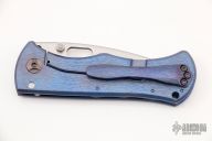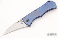 This Rostrum by John Gray features a satin finished Magnacut blade with thumbstuds and thumbhole. The handle has an anodized and bark finished titanium frame with a matching backspacer and tip up titanium clip. Nice detent, lockup and blade seating. New from maker at the 2022 Blade Show West.