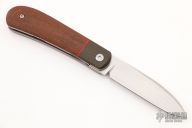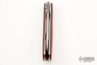 This Zulu Front Flipper by Enrique Pena features a hand rub satin finished blade with swedge, notched thumbrest and front flipper. The handle has green canvas micarta bolsters, brown canvas micarta scales over red liners, brown canvas micarta backspacer. Stainless Steel Shield.  Includes a Velcro case. New from Maker!