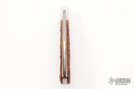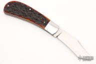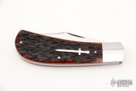 This Lanny's Clip by Kabisch Custom Knives features a hand rub satin finished tanto recurve blade with nail nick. The handle has stainless steel bolsters and liners, jigged bone covers with stainless steel sword escutcheon, stainless steel spring. Has half stop, flush in all positions. Comes with a zippered case. New from maker at the 2022 Blade Show West.