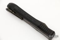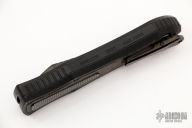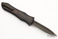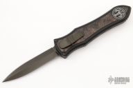 This knife is a Deadlock Model C by Grant and Gavin Hawk. It has a double-edged black blade. The handle has a Fat Carbon inlays in the black aluminum frame with a tip down spring clip, titanium. The thumb slide on the handle is also titanium and handle has a titanium overlay. Comes with a cloth pouch. Grant and Gavin Hawk set out to create a double action OTF with no blade play.... They did it, NO blade play. Comes with tool, cloth pouch. New from maker at the 2022 Blade Show West.