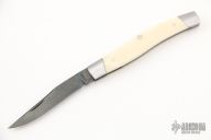 This Slim Serpentine Trapper by Daniel Keown features a blued blade with nail nick. The handle has 416 stainless steel bolsters with integral liners, mammoth ivory covers, blued A2 spring, stainless steel pins. Has half-stop, flush in all positions. Comes with a zippered case. New from maker at the 2022 Blade Show West.
