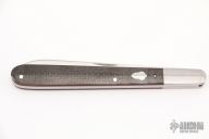 This Melon Sampler by Bill Ruple features a hand rub satin finished blade with nail nick. The handle has stainless steel bolsters, carbon fiber covers with a stainless steel escutcheon, satin finished stainless steel liners and spring. Has half-stops, flush in all positions. New from maker at the 2022 Blade Show West.
