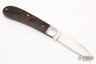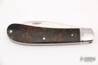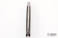 This Zulu Spear by Mike Zscherny features a spear point blade with a hand rubbed satin finish and nail nick. The handle has a fluted stainless steel bolsters, rag micarta covers, stainless steel liners and springs. Half stop on blade, flush in all positions. New from maker!