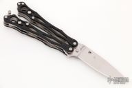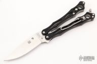 This Spyderfly 2 Balisong by Spyderco has a satin finished blade. Handle is black G10 over stainless steel liners and stainless steel paper-clip style pocket clip. Excellent condition.