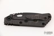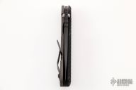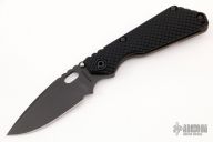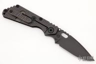 This SNG framelock folder by Mick Strider features a black blade and a dimple pattern black G-10 and flamed titanium frame and tip up titanium clip. Includes a "Lock Bar Stabilizer" for maximum reverse lock retention. Nice detent, lockup and blade seating. New condition.