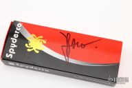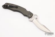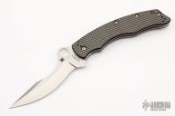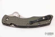 This C146CFP Szabo Folder from Spyderco features a satin finish clip point blade with swedge and thumb hole. The handle is comprised of gold line carbon fiber/G10 laminate scales over steel liners and barrel spacers. Black coated 4 way adjustable pocket clip. Lanyard tube in pommel. New condition. Comes with original box and papers. Box is signed by Laci Szabo.