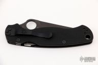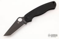 This G81GM4BKP2 Paramilitary 2 by Spyderco features a black tanto blade with thumb hole, notched thumb ramp and choil. The handle is comprised of textured black G10 scales over a stainless steel subframe and lockbar. 4 way adjustable pocket clip and lanyard tube in pommel. Includes original box and paperwork. Excellent condition.