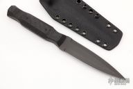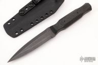 This Pocket Rocket by Auxiliary Manufacturing features an acid tumbled double edged blade with .124" blade stock and .982" blade depth. The handle has carbon fiber scales with black linen micarta pins. Comes with a kydex sheath with clip. New from maker at the 2022 Blade Show West.