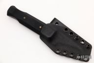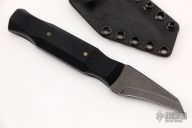 This Pocket Rocket V3 by Auxiliary Manufacturing features an acid tumbled blade with .135" blade stock and 1.080" blade depth. The handle has black linen micarta scales with brass pins. Comes with a kydex sheath with clip. New from maker at the 2022 Blade Show West.