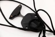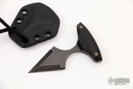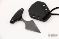 This BroadHead by Auxiliary Manufacturing features an acid tumbled double edged chisel ground blade with .133" blade stock and 1.151" blade depth. The handle has black paper micarta scales with brass pins. Comes with a kydex neck sheath. New from maker at the 2022 Blade Show West.