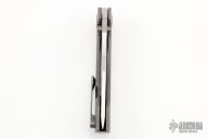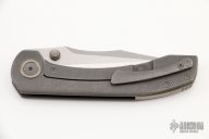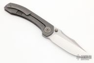 This Raptor by Brian Brown features a satin finish clip point style blade with dual thumbstuds. The handle has a titanium frame with anodize finish pivot collars, tip up clip and backspacer. Comes with a zippered case and COA. Excellent condition.